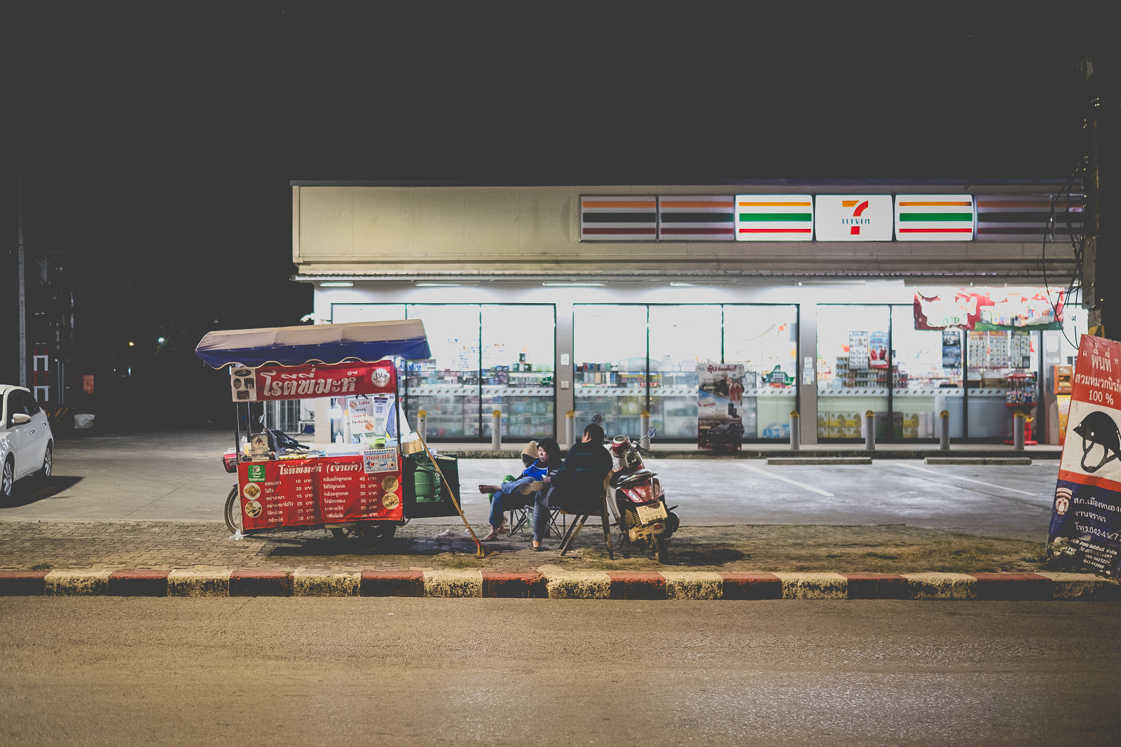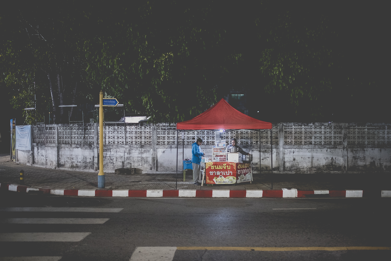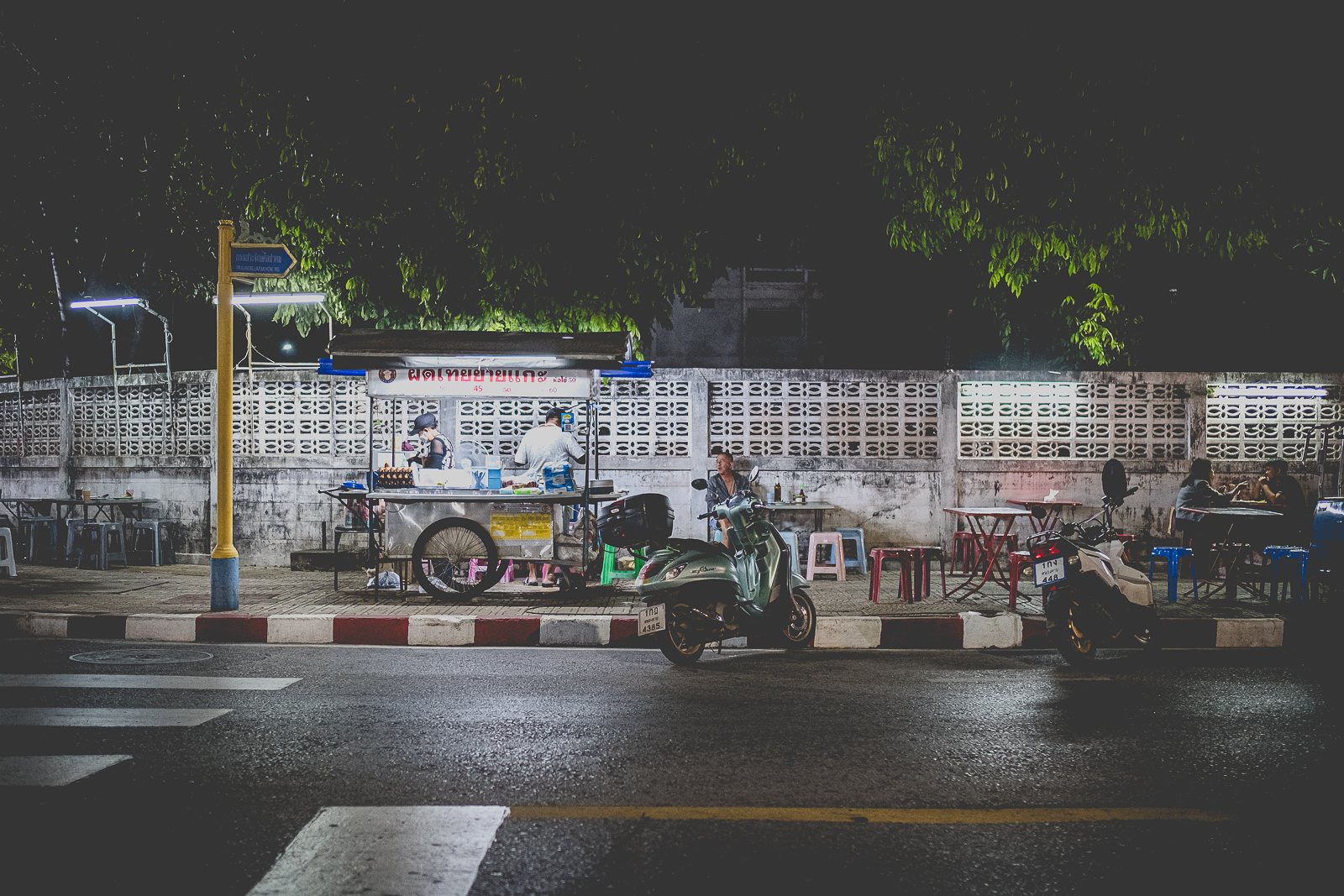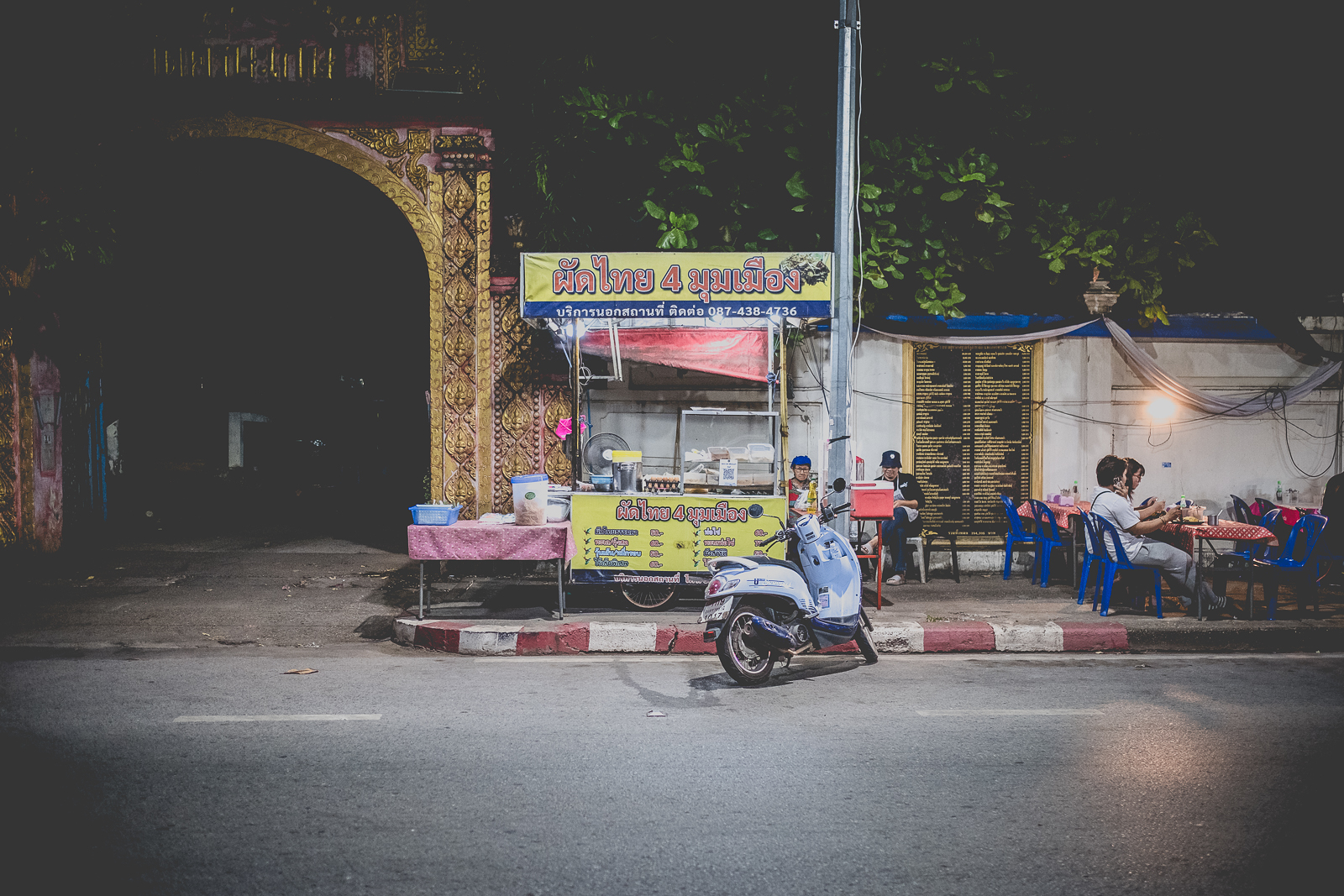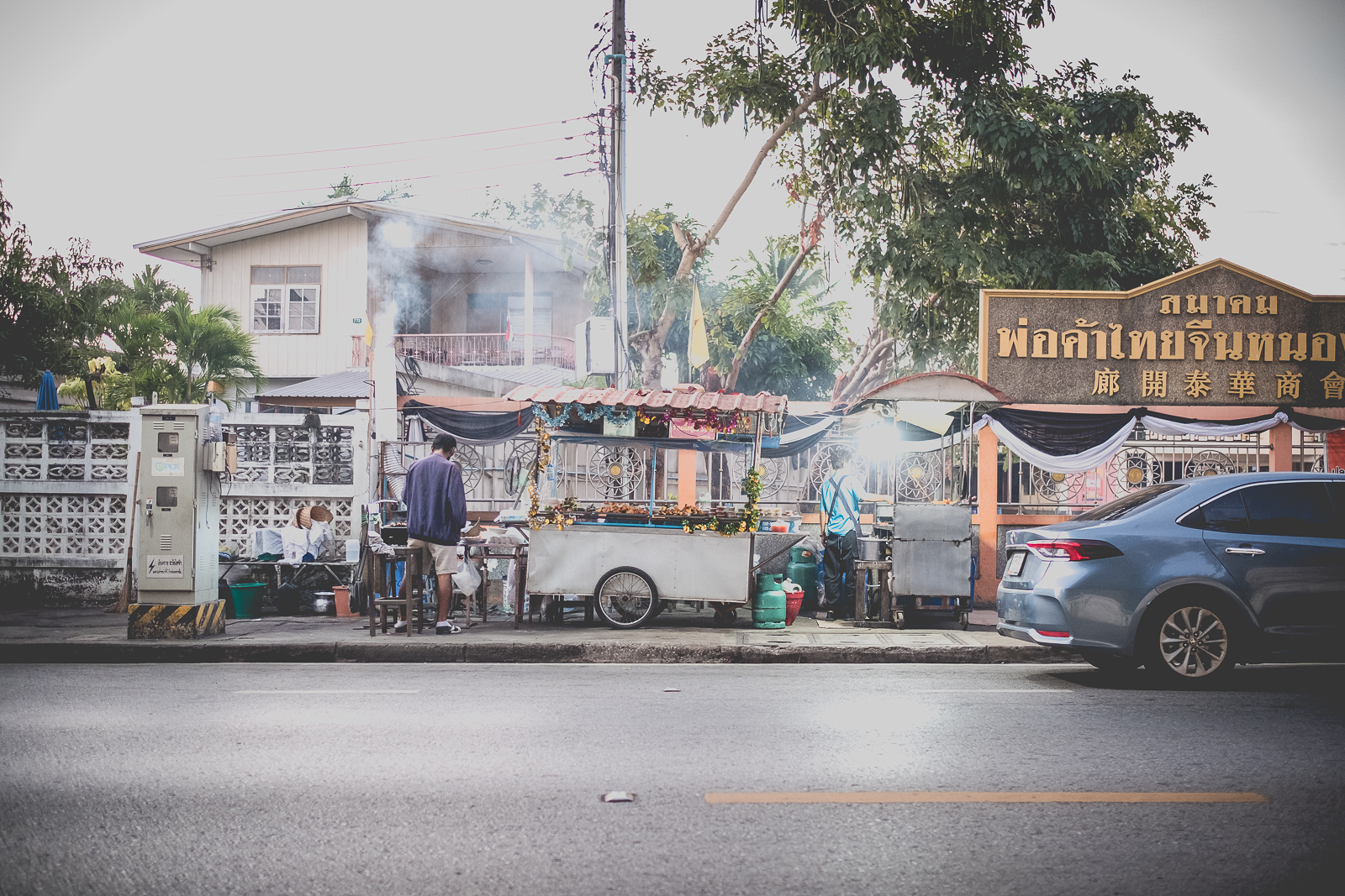 A Nong Khai – come in molti altri luoghi – ce ne sono molti. Cambiano già al mattino presto, insieme alla luce, a volte anche prima. Una baracca, un carretto. Montati nel silenzio. Un fornello, qualche sgabello di plastica colorata, così bassi che pare di tornare bambini. Forse è quel senso di non voler disturbare a volerli così bassi. Con le ginocchia in faccia.