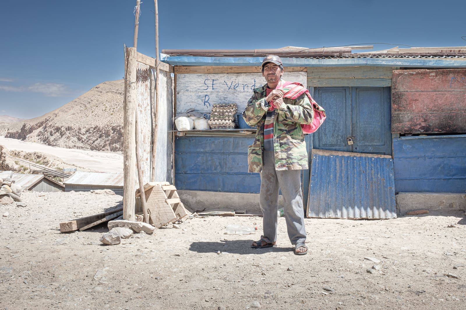Esco dalla piccola baracca di mattoni robusti, dal tetto di lamiera sbiadita e con il legno a proteggerla dal vento e dalla polvere. Resto abbagliato dal sole dell’altipiano andino e attendo qualche secondo per abituarmi al cambio di luce. Soddifatto per la bottiglia grande che tenevo in mano. E le due cioccolate senza preoccuparmi di una eventuale data di scadenza.