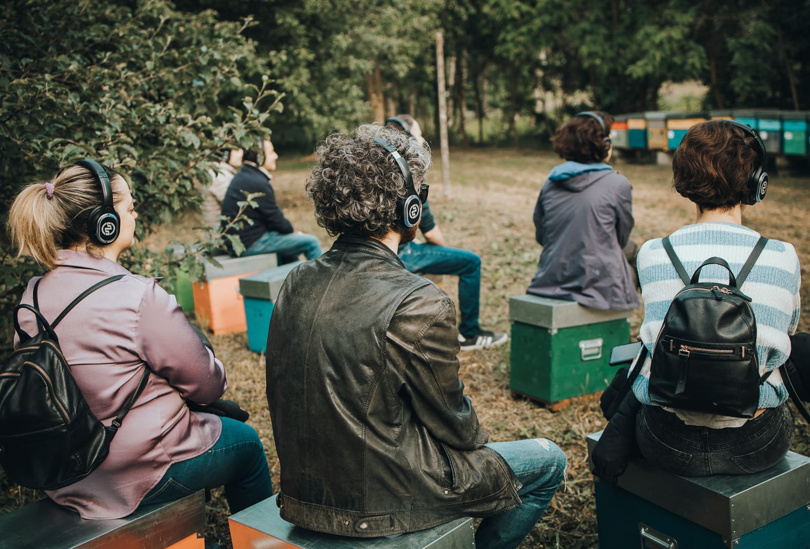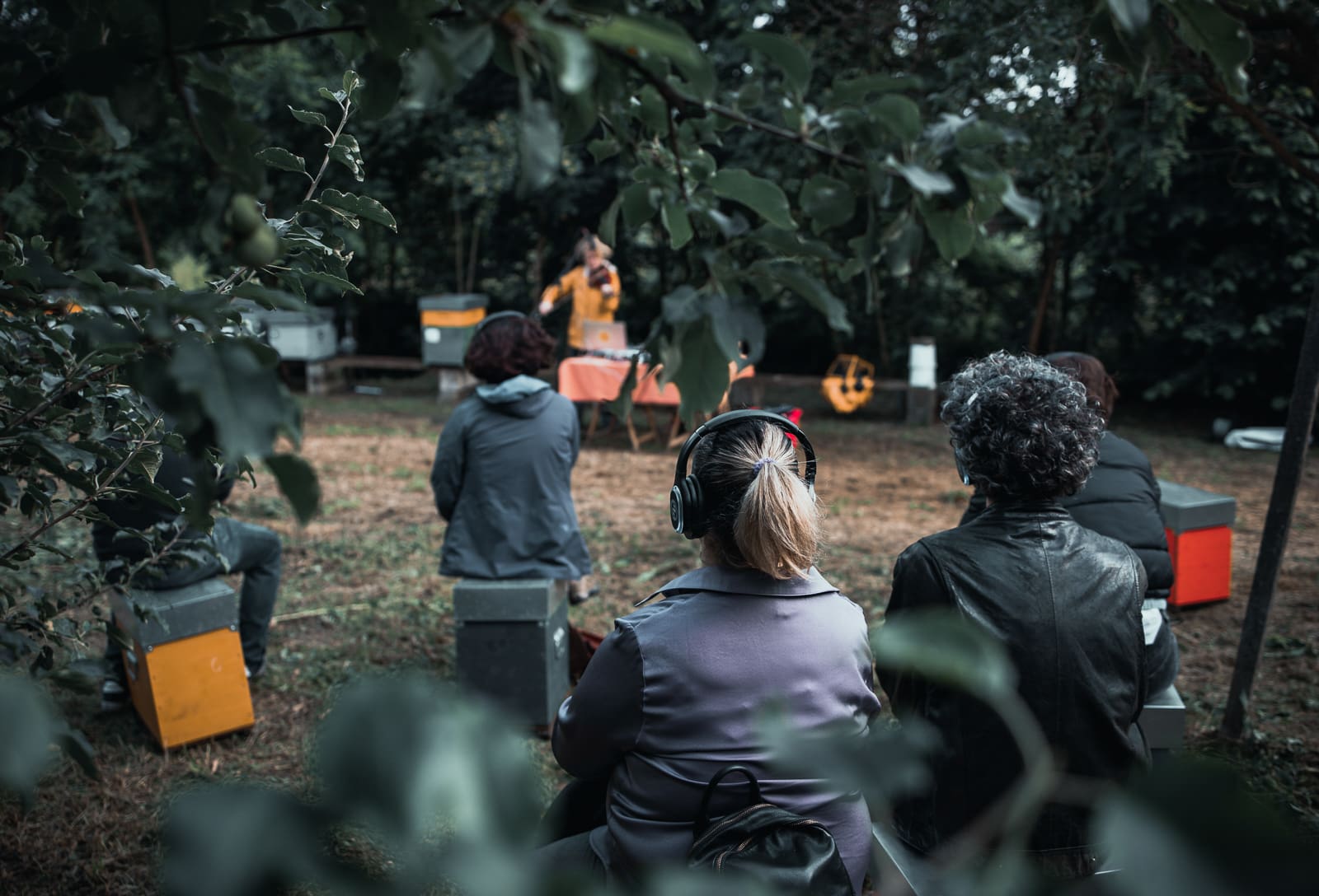 Il cuore della musica delle Tobees è la sonorizzazione in apiario. Si tratta di concerti all’aperto con 30–50 spettatori, tutti dotati di cuffie wireless, e immersi nel paesaggio sonoro dell’alveare. Le cuffie sono utili sia per non disturbare le api che per isolare l’ascolto, e non inquinarlo con suoni antropici.