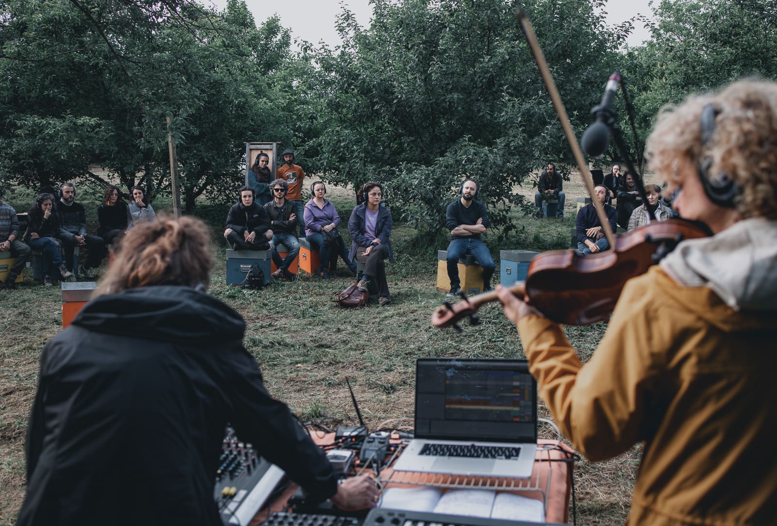 Azzurra registra e manipola in tempo reale il suono di questi meravigliosi insetti impollinatori e della natura che li circonda. Marna, facendosi trascinare dal suono prodotto da Azzurra, si inserisce con il suo violino, cesellando note e frasi musicali, creando un connubio magico tra natura e uomo, tra elettronica e strumenti musicali antichi.